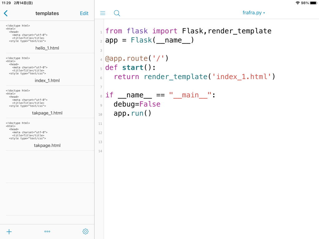 16行目 「選択」と表示されるボタンを作って、ボタンが押されると結果が表示